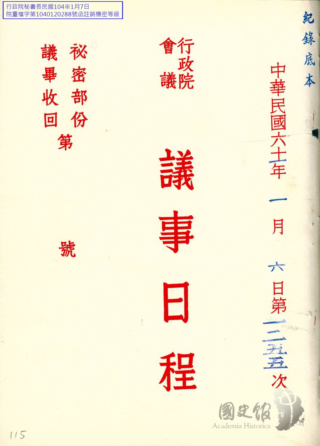 行政院會議議事錄 臺第三七六冊一二五四至一二五五