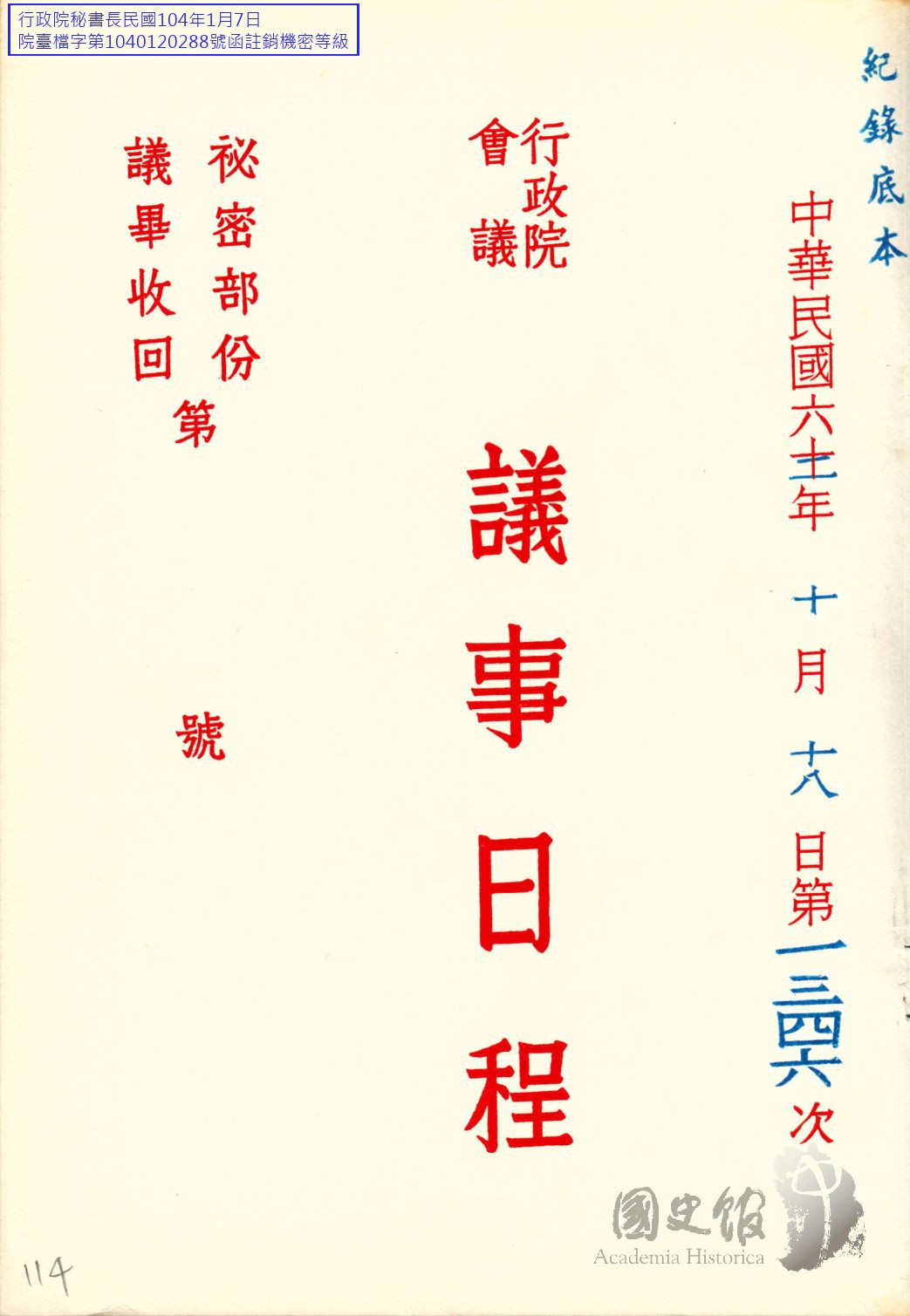 行政院會議議事錄 臺第四○九冊一三四五至一三四七