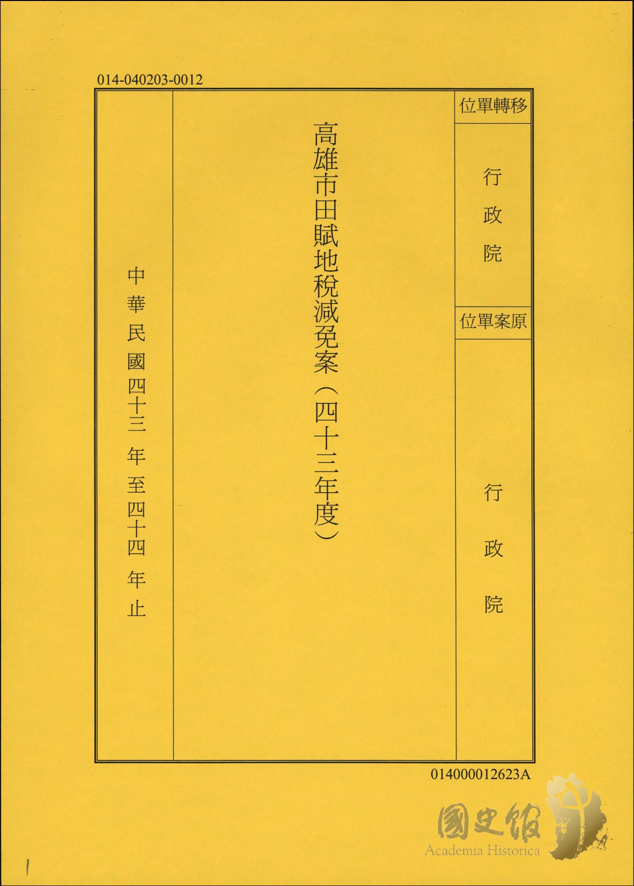 高雄市田賦地稅減免案(四十三年度)