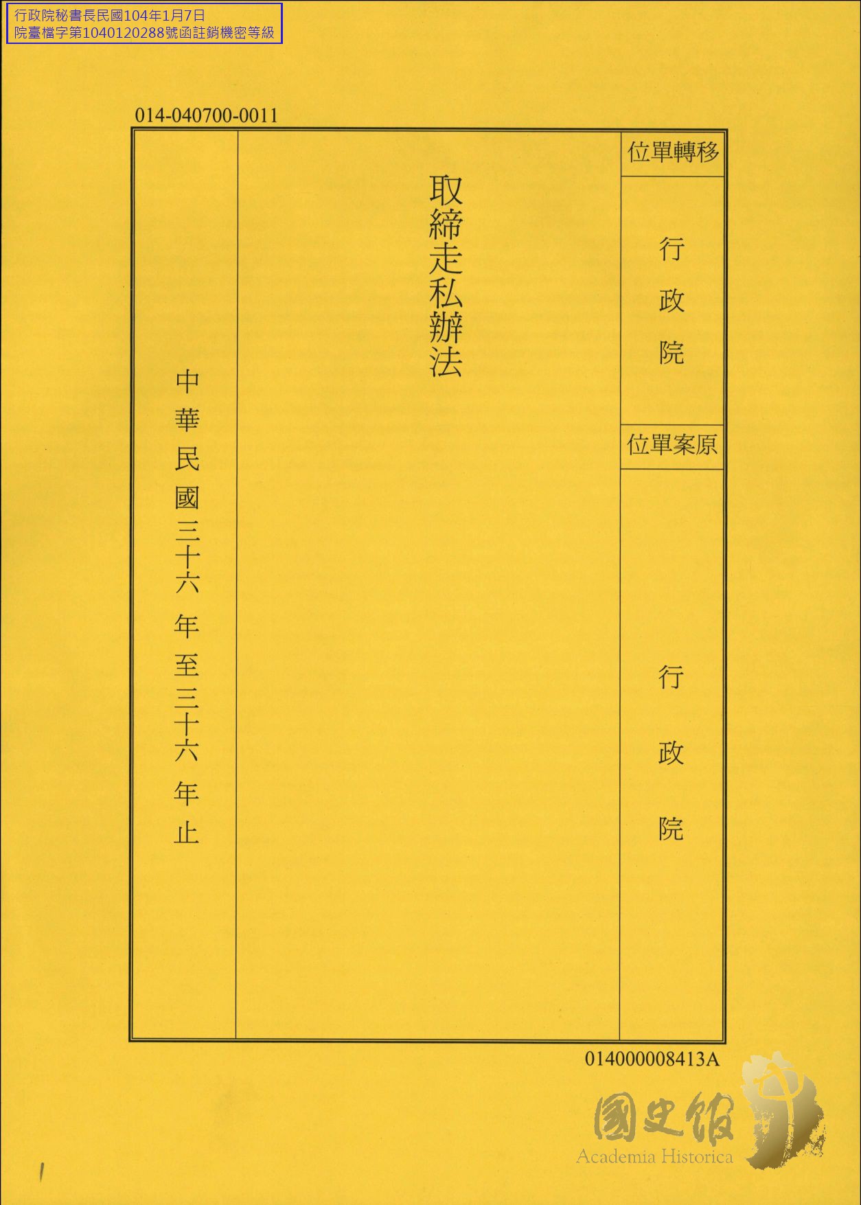 財政部函行政院秘書處奉交上海吳市長電呈取締走私辦法三項一案復請查照轉陳