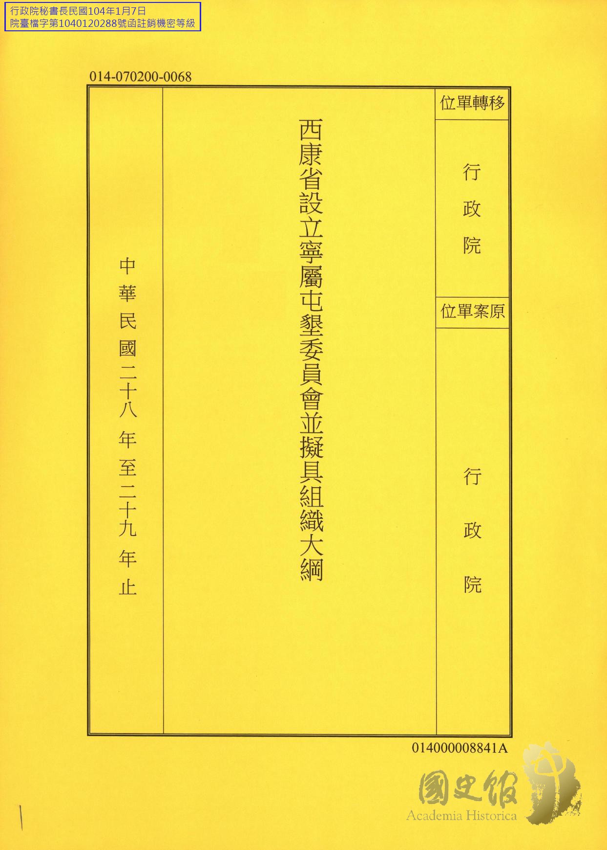 西康省設立寧屬屯墾委員會並擬具組織大綱