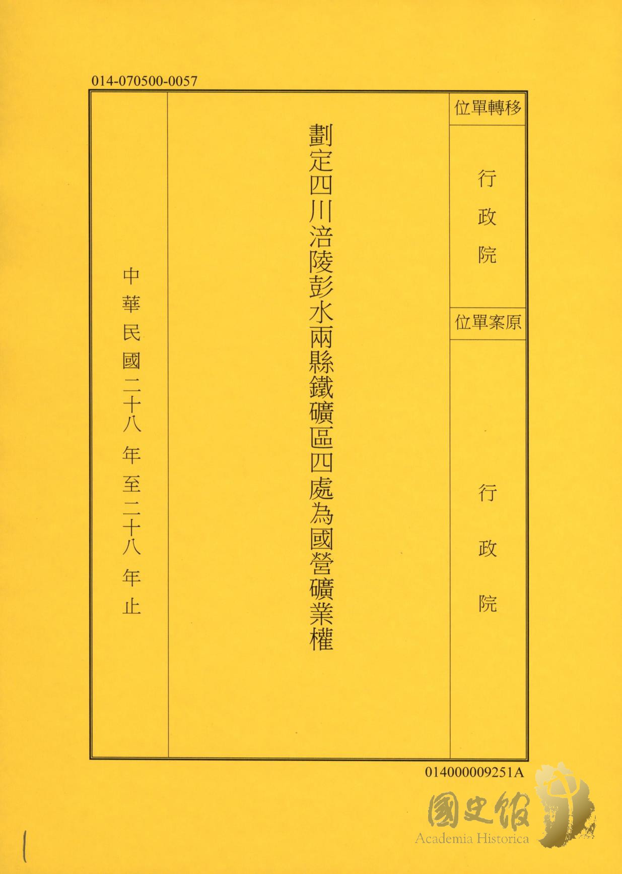 劃定四川涪陵彭水兩縣鐵礦區四處為國營礦業權
