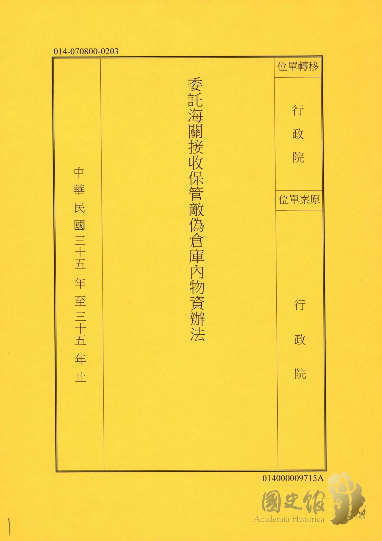 委託海關接收保管敵偽倉庫內物資辦法