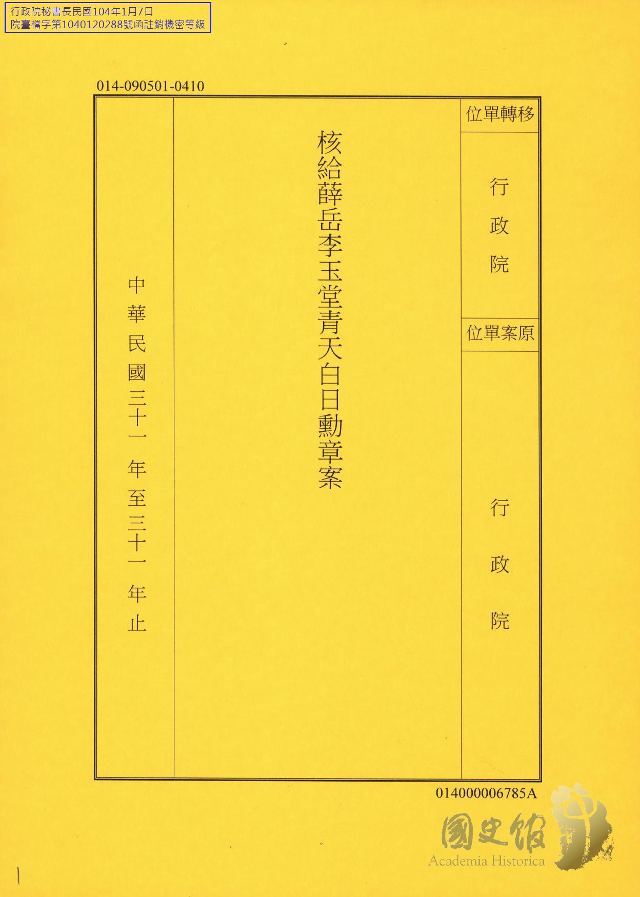 核給薛岳李玉堂青天白日勳章案