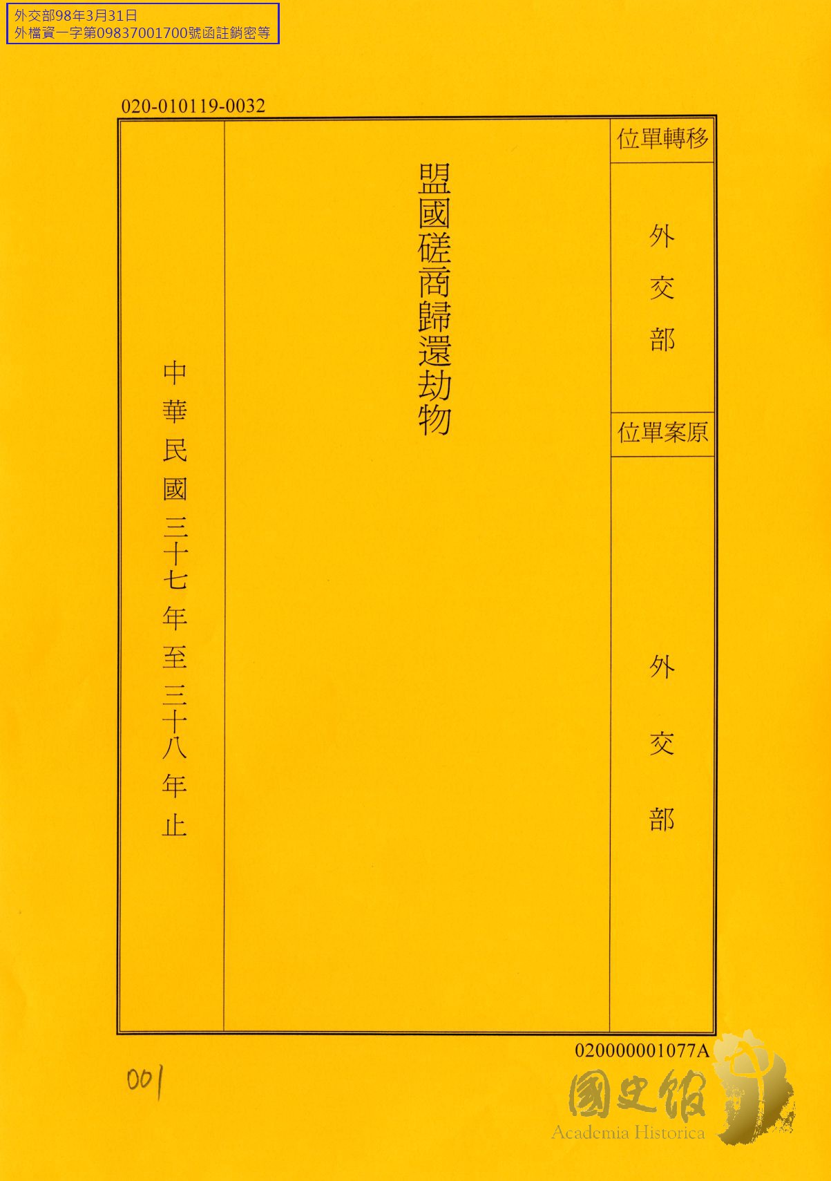外交部/亞東太平洋司/日本/劫物歸還