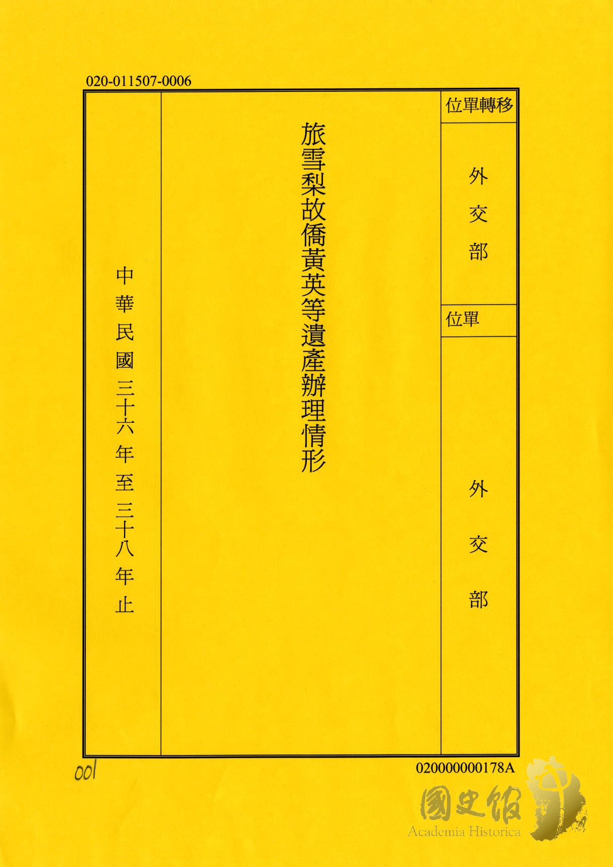 旅雪梨故僑{#黃英#}等人遺屬辦理遺產繼承情形相關文電