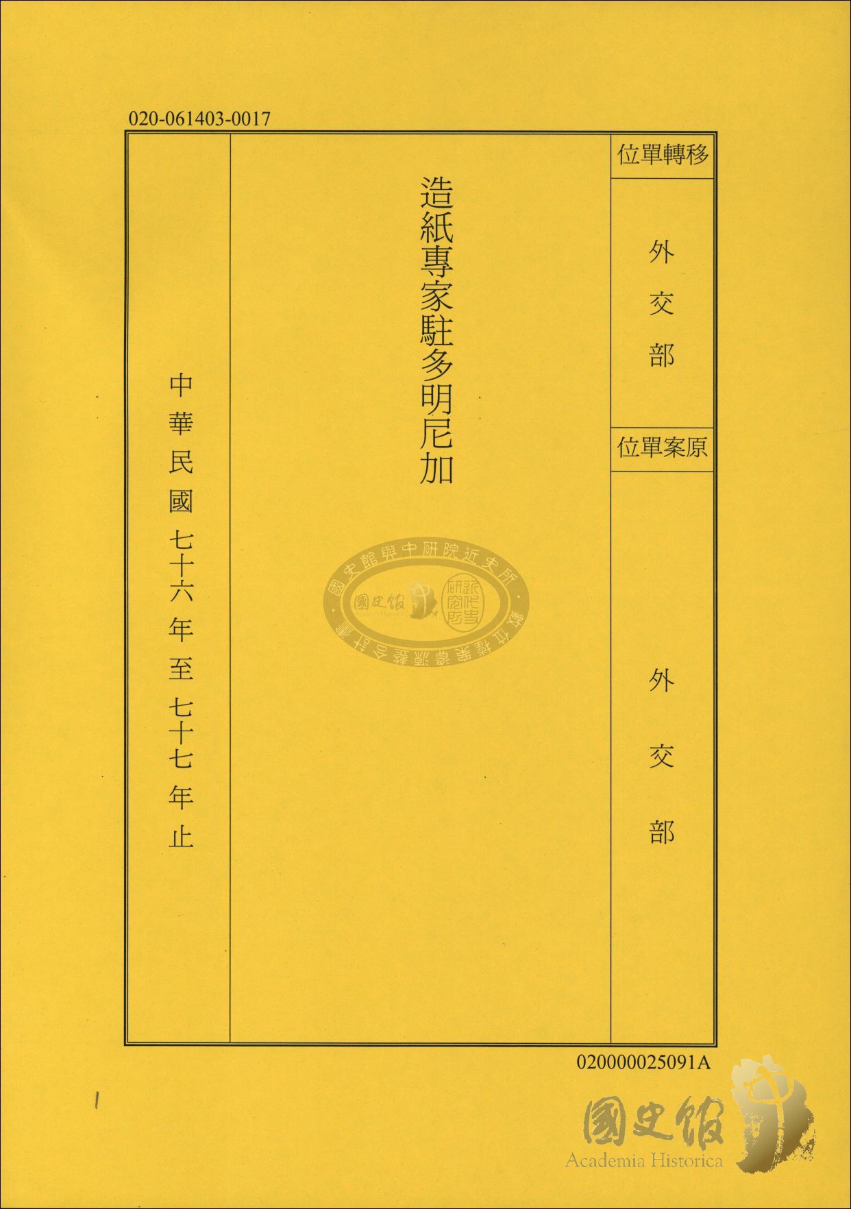 駐多明尼加大使館、外交部、海外技術合作委員會秘書處會關於多明尼加國家造紙廠營運面臨嚴重技術困難請我國派造紙專家與廠房機械工程師前往協助解決問題事赴多工作待遇津貼、甄選人選請中南美司指派有關專家擔任面試評審工作、指派造紙專家{#陳民功#}與紙廠機械工程師{#楊植樑#}前往多明尼加、造紙專家陳民功檢呈綜合工作報告等相關文電