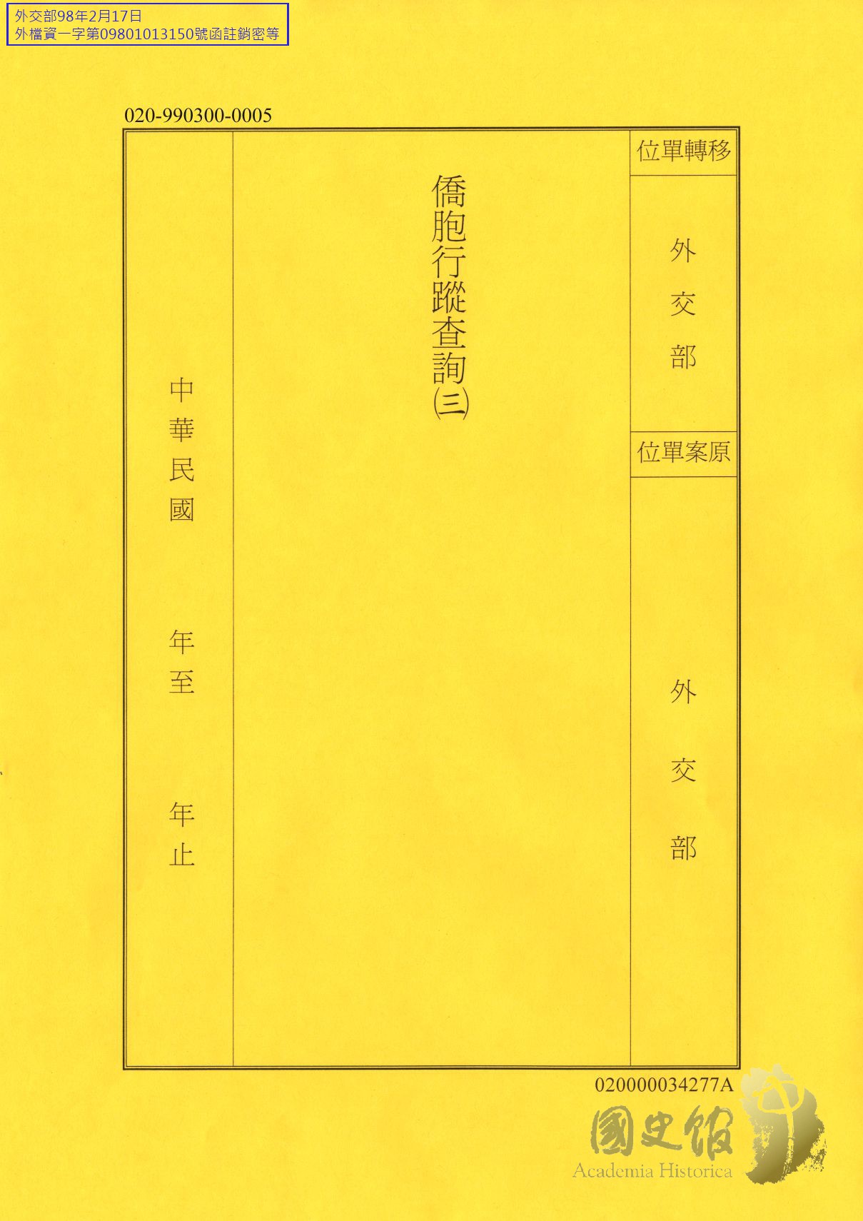 外交部/國家檔案分類表/人事/
