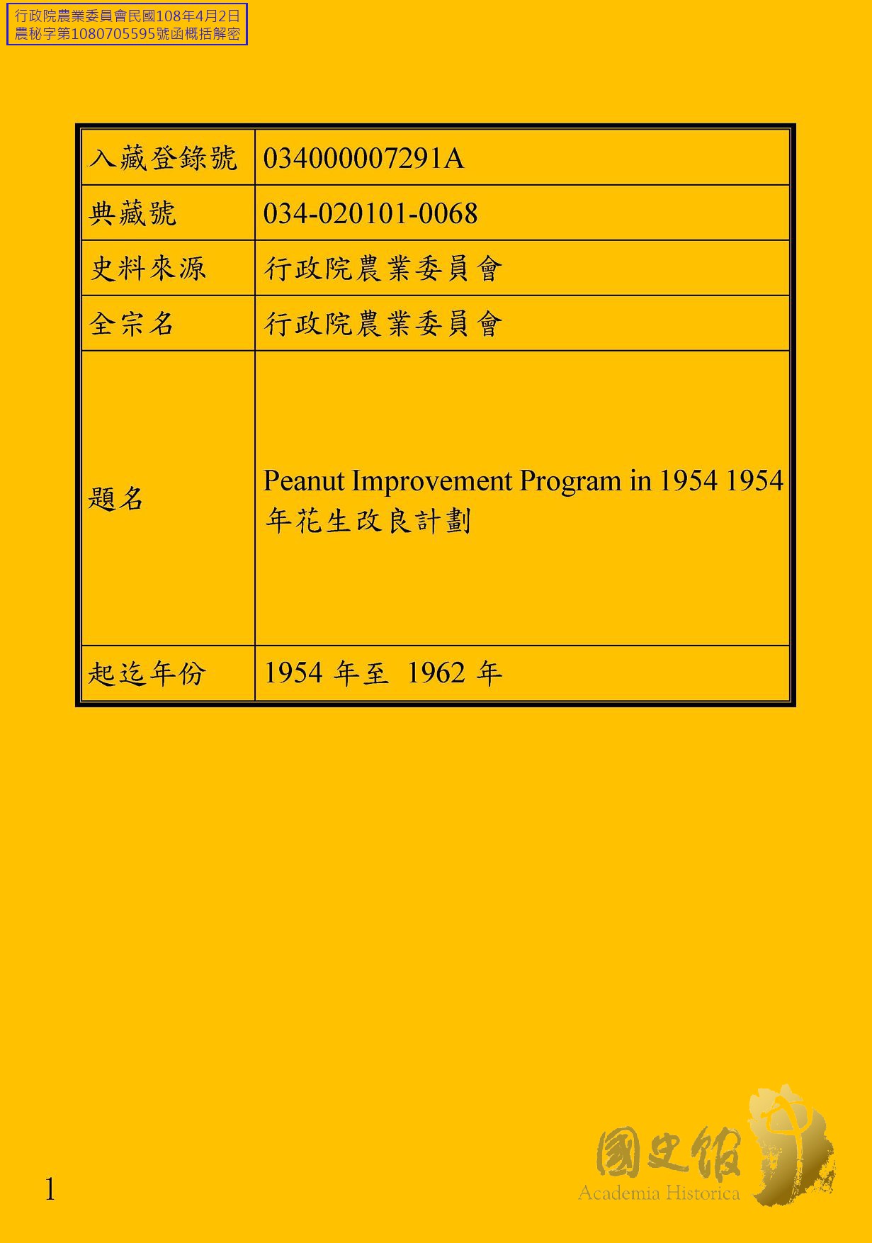 Peanut Improvement Program in 1954 1954年花生改良計劃