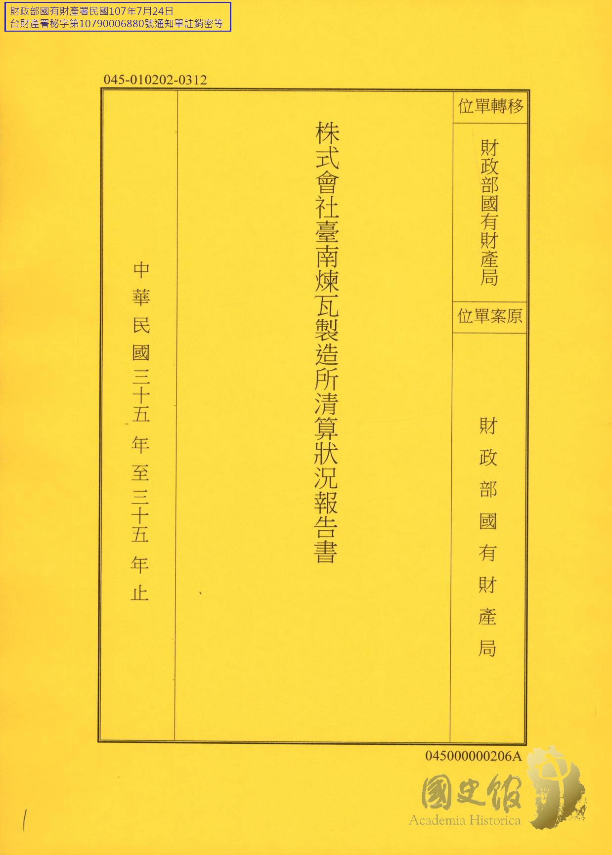 財政部國有財產局/財政部國有財產局檔案/管理處分/日產清算