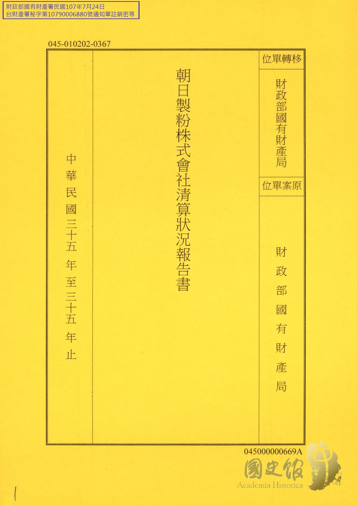 財政部國有財產局/財政部國有財產局檔案/管理處分/日產清算