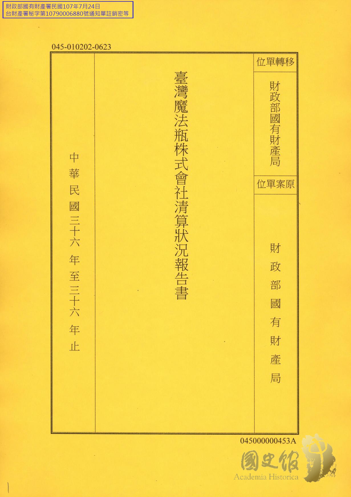 臺灣魔法瓶株式會社清算狀況報告書