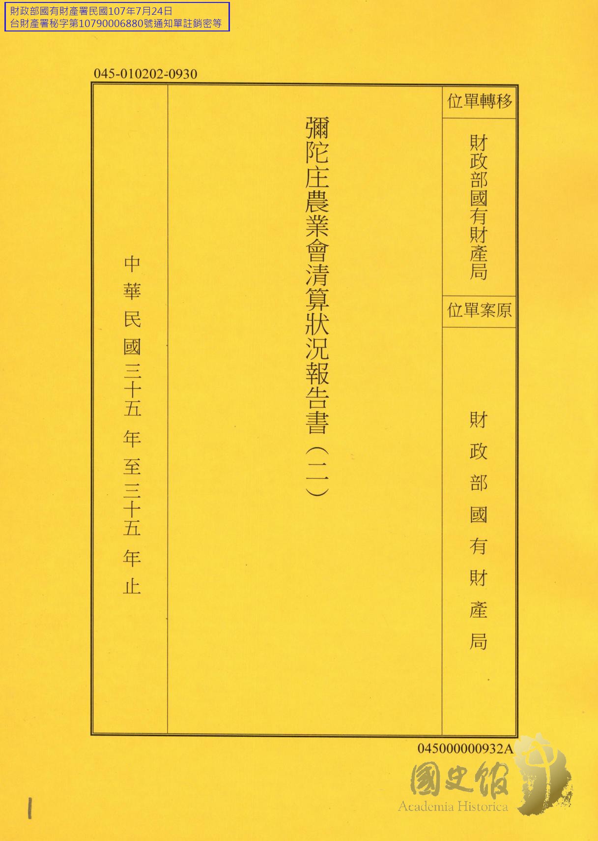 財政部國有財產局/財政部國有財產局檔案/管理處分/日產清算