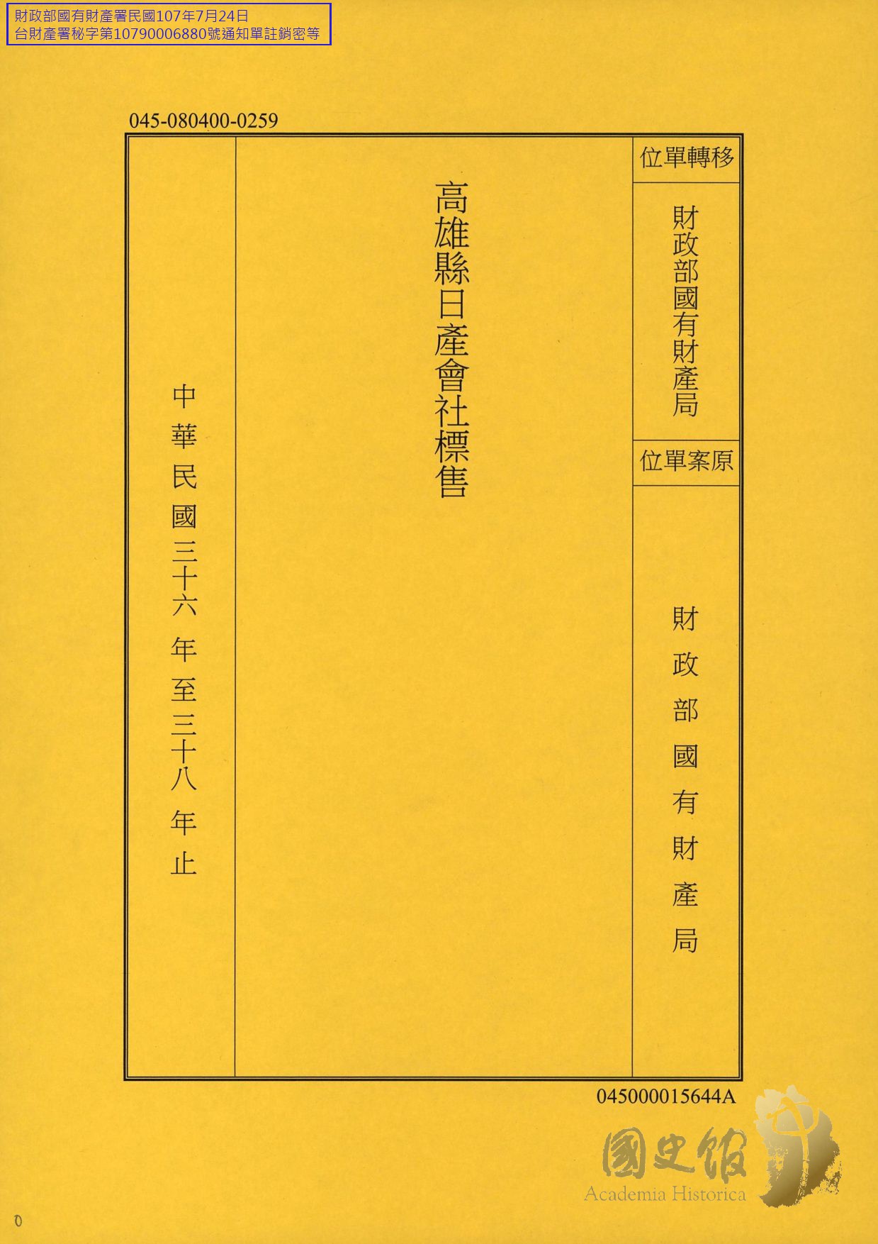 財政部國有財產局/臺灣省日產清理處檔案/估價標售/