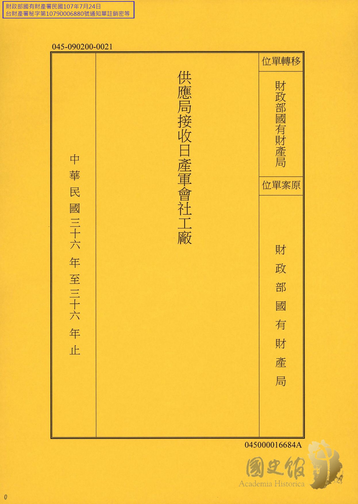 財政部國有財產局/臺灣省日產處理委員會檔案/接收/