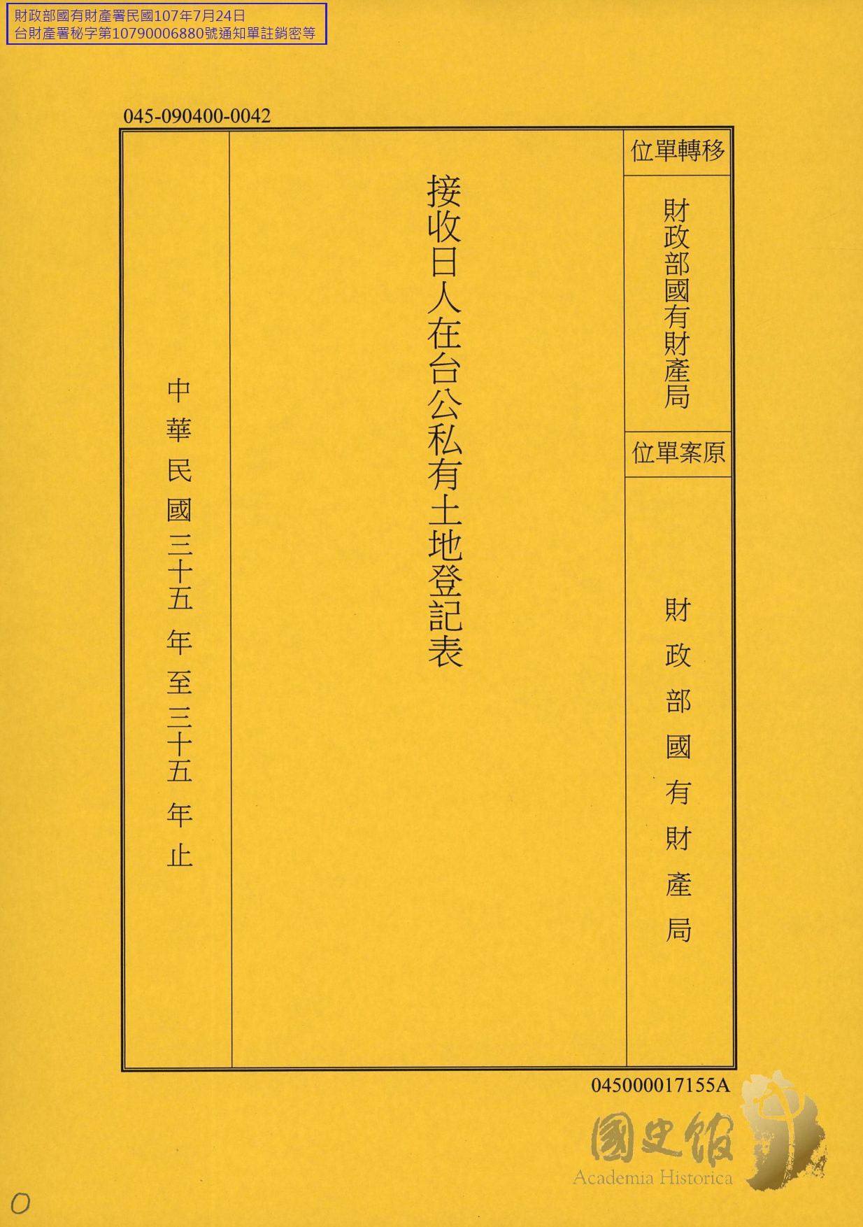 財政部國有財產局/臺灣省日產處理委員會檔案/調查/