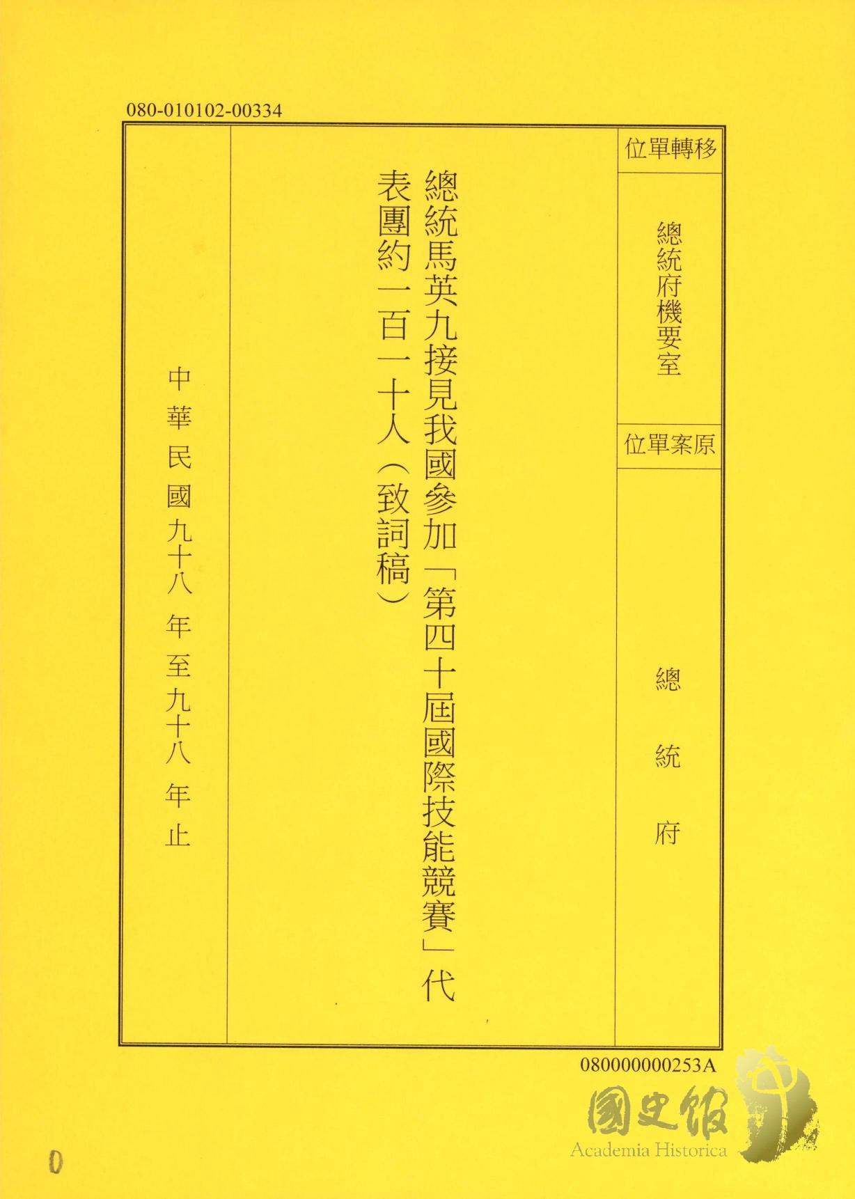 總統馬英九接見我國參加「第40屆國際技能競賽」代表團約110人(致詞稿)