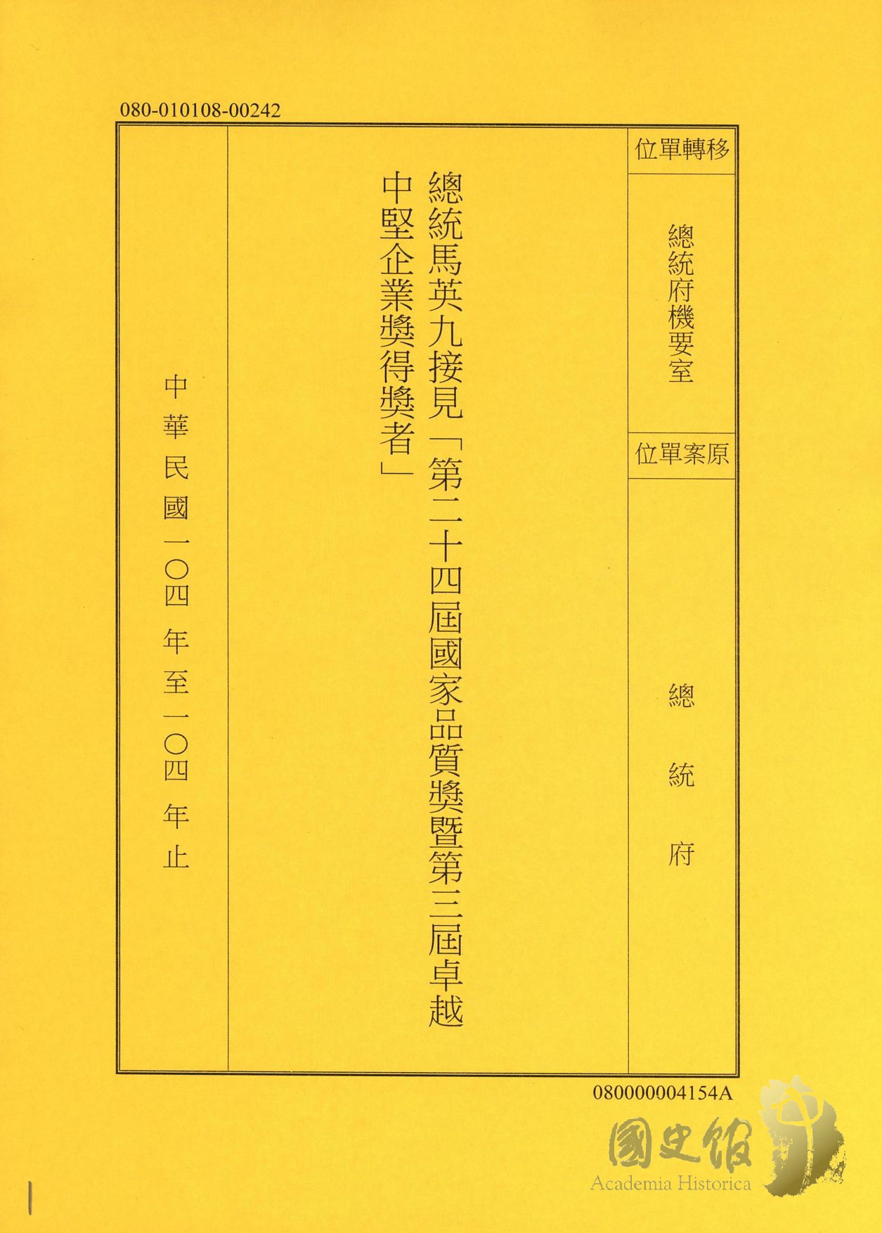 總統馬英九接見「第24屆國家品質獎暨第3屆卓越中堅企業獎得獎者」