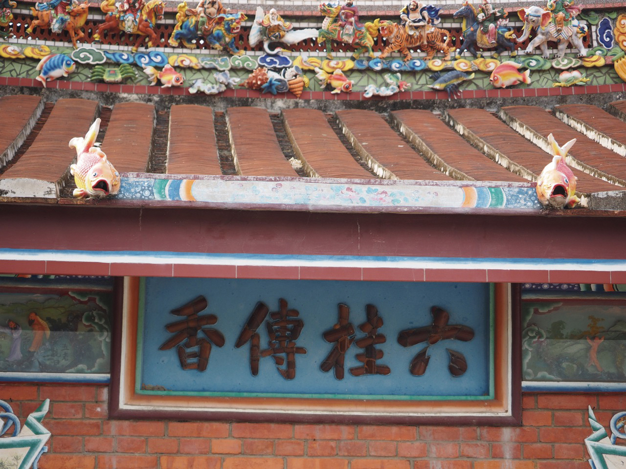 正廳門上匾額書有「六桂傳香」四字。神龕上方牌樓面匾額「鰲首傳芳」期勉翁氏子孫能夠效法先祖,努力精進、獨占鰲頭,成為後世典範