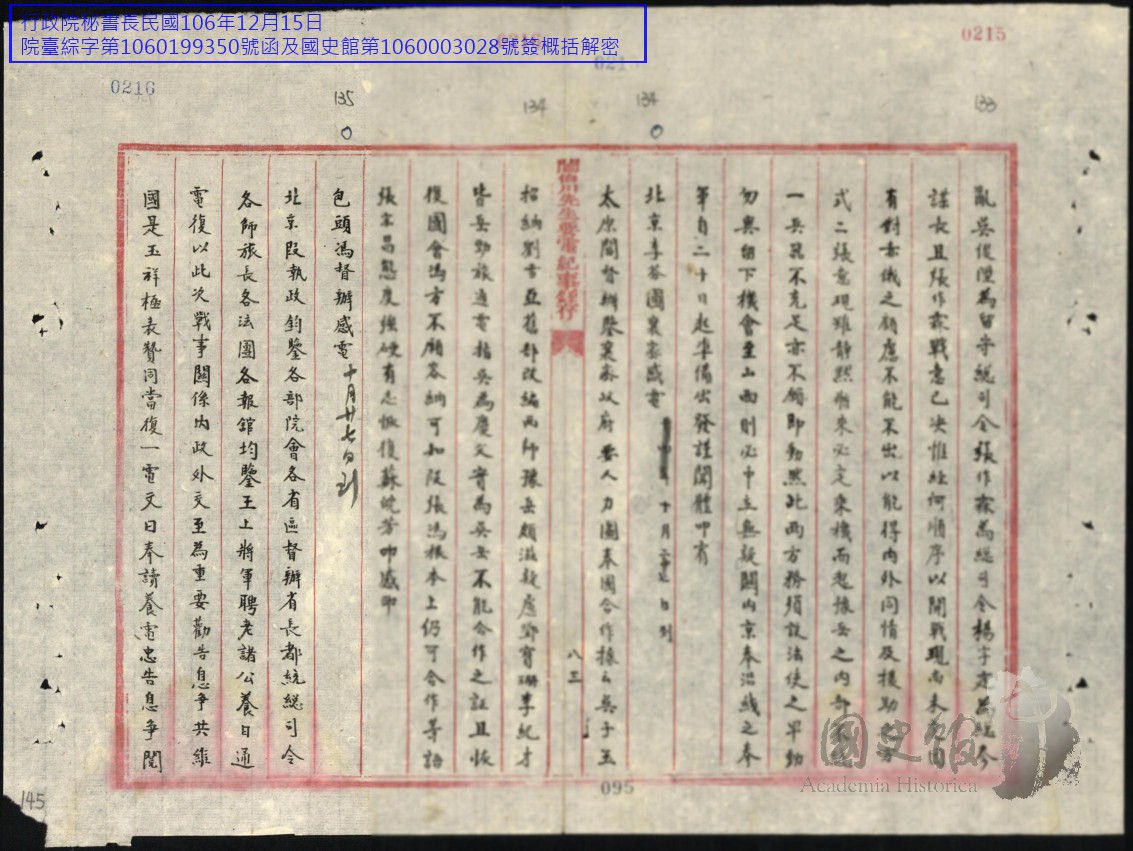 閻錫山史料/文件/電報/要電錄存