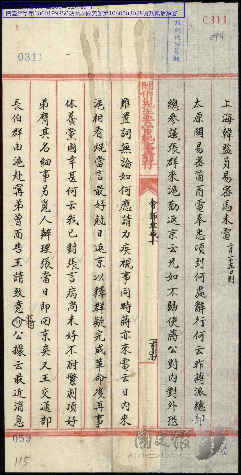 北伐會師軍事部署案(二)【原卷名:閻伯川先生要電錄存北伐會師軍事部署案】