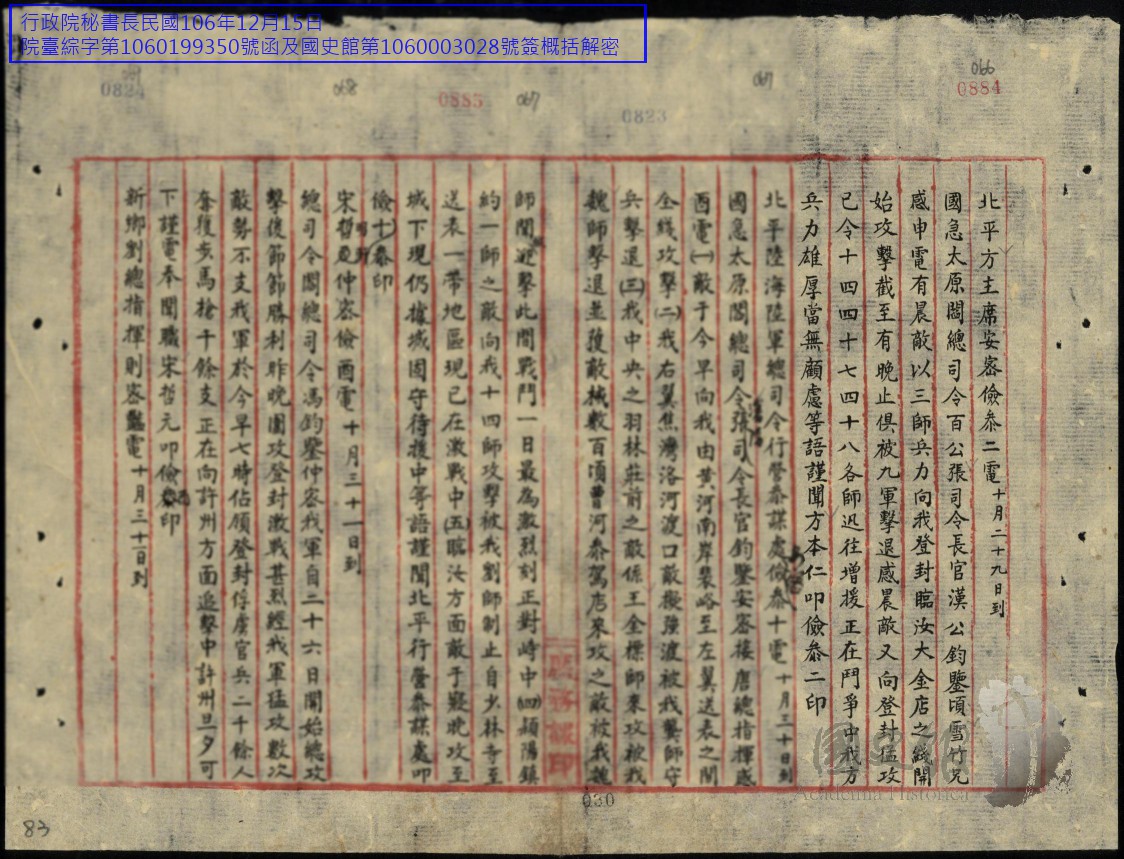 處理西北軍事馮氏再變案(二)【原卷名:閻伯川先生要電錄存處理西北軍事馮氏再變案鏖戰豫鄂】