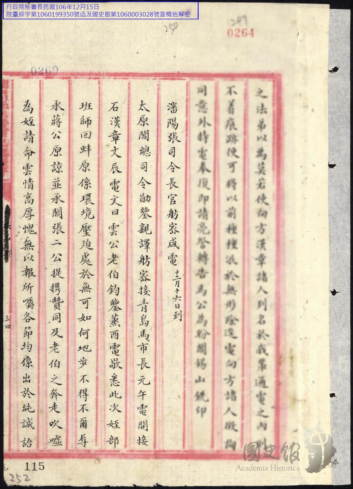 解決唐變處理善後案【原卷名:閻伯川先生要電錄存解決唐變處理善後案撫綏石部】