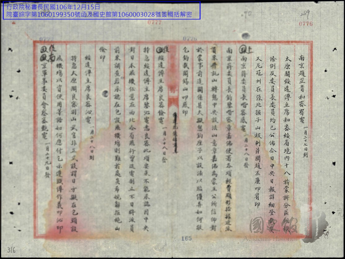 內蒙自治案【原卷名:閻伯川先生要電錄存內蒙自治案】