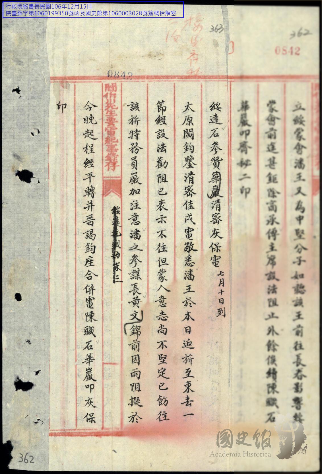 內蒙自治案【原卷名:閻伯川先生要電錄存內蒙自治案】