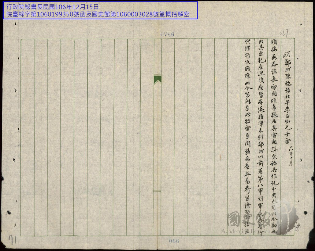 蔣方民國18年10月往來電文錄存(三)【原卷名:蔣方往來電文民國十八年十月第參冊】
