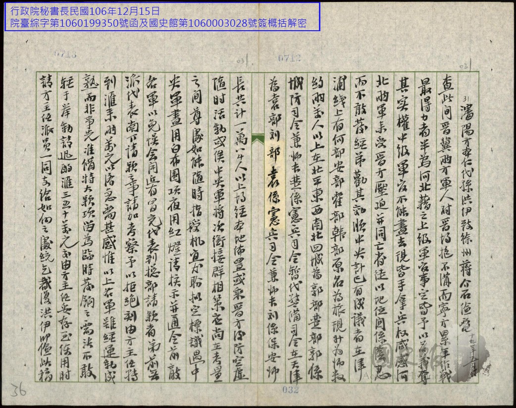 孫洪伊電蔣中正晉冀兩方軍人對晉均不滿寧方累年作戰最得力者為冀