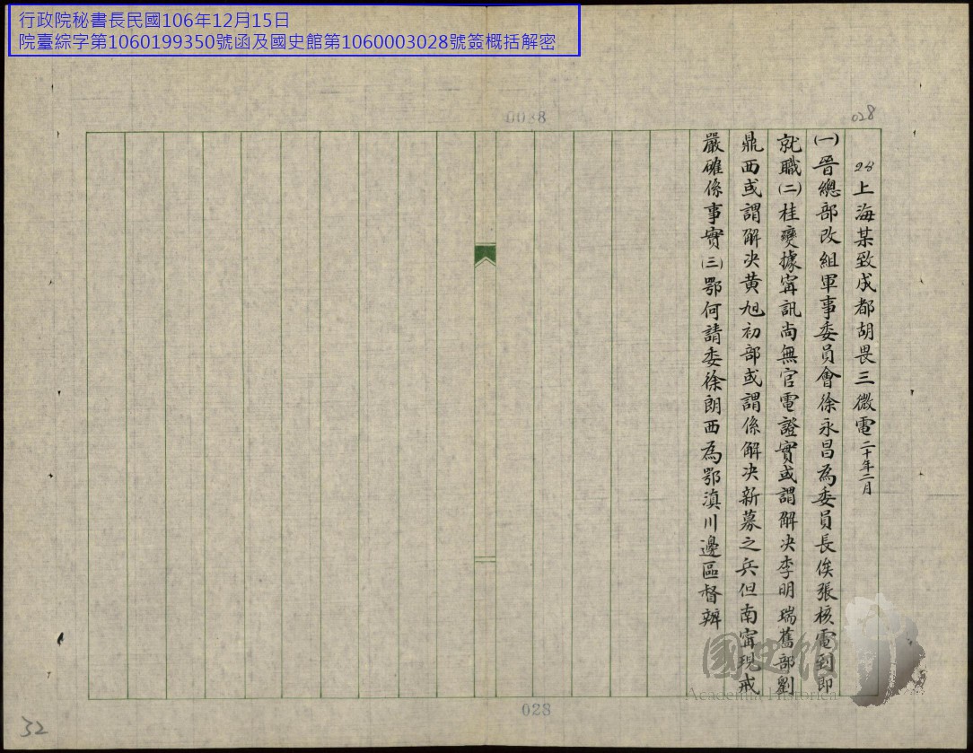 上海某電胡畏三晉總部改組軍事委員會徐永昌為委員長