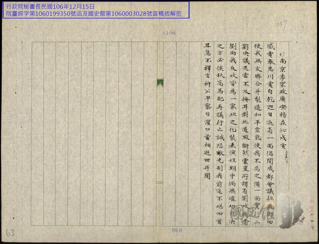 閻錫山史料/文件/電報/四川各部往來電文錄存