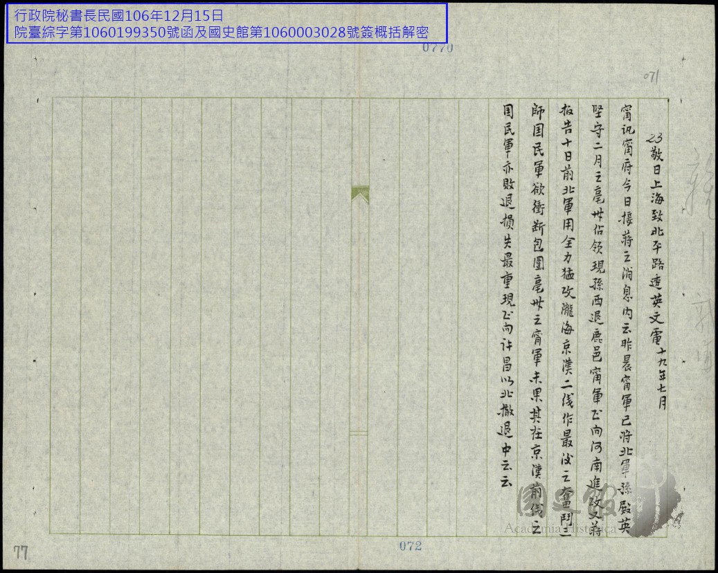 雜派民國19年7月往來電文錄存(五)【原卷名:奉方、雜派往來電文、北平特訊民國十九年七月】