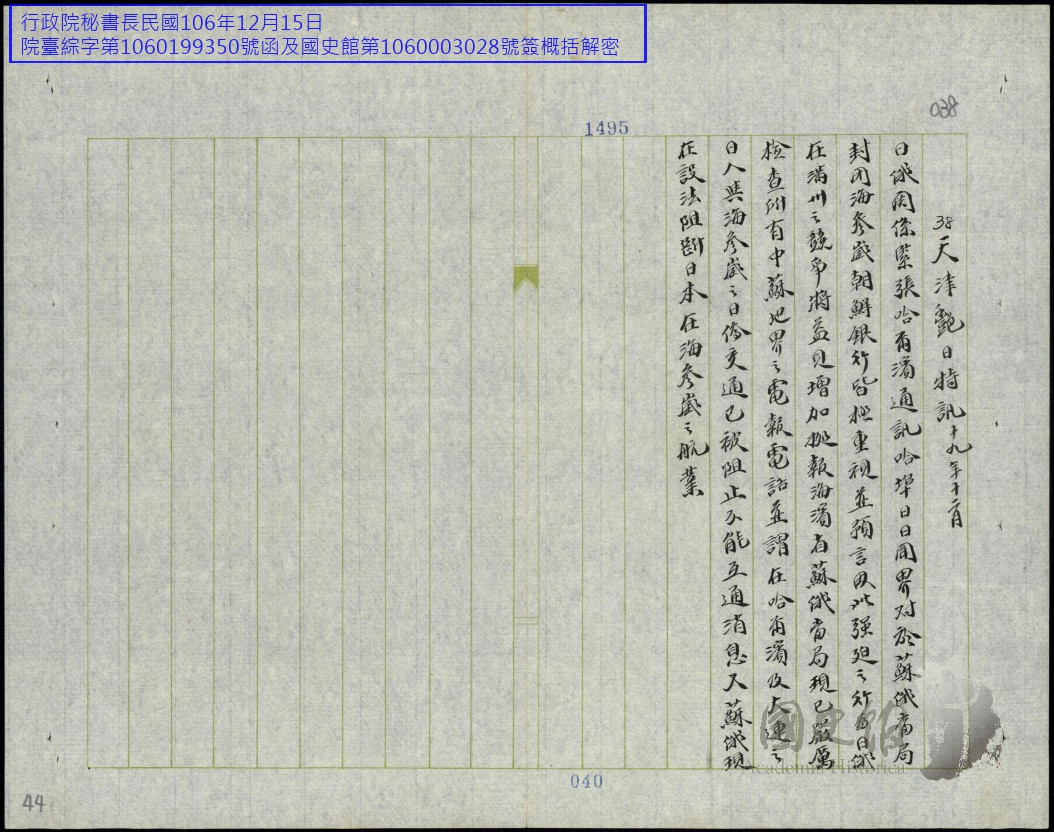 雜派民國19年12月往來電文錄存(六)【原卷名:天津特訊民國十九年十二月第肆冊】