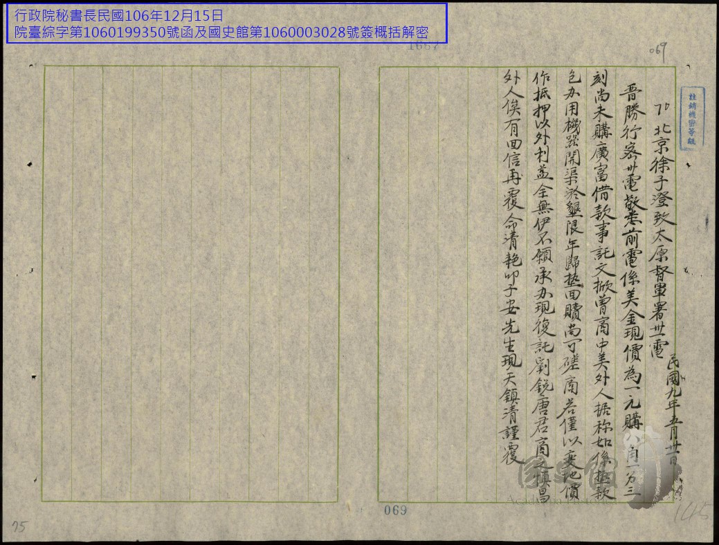 閻錫山史料/文件/電報/各方往來電文原案及錄存