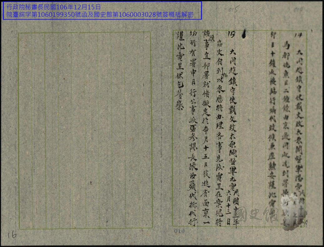 閻錫山史料/文件/電報/各方往來電文原案及錄存