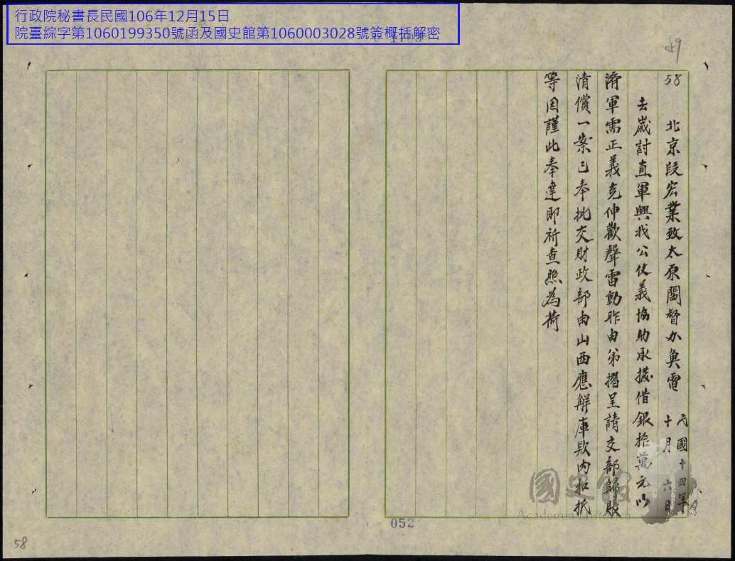 閻錫山史料/文件/電報/各方往來電文原案及錄存