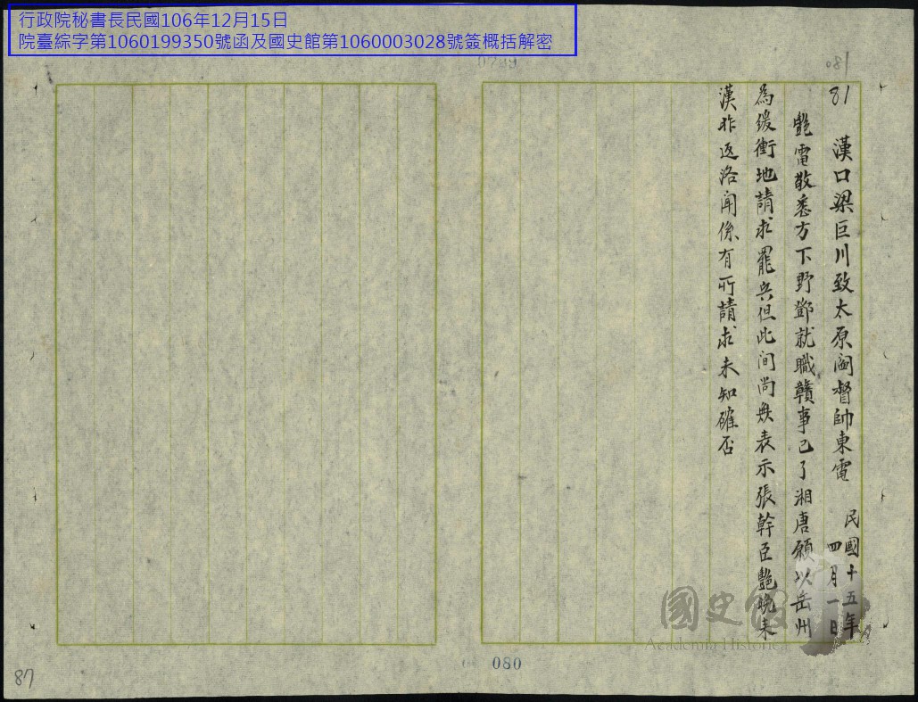 閻錫山史料/文件/電報/各方往來電文原案及錄存