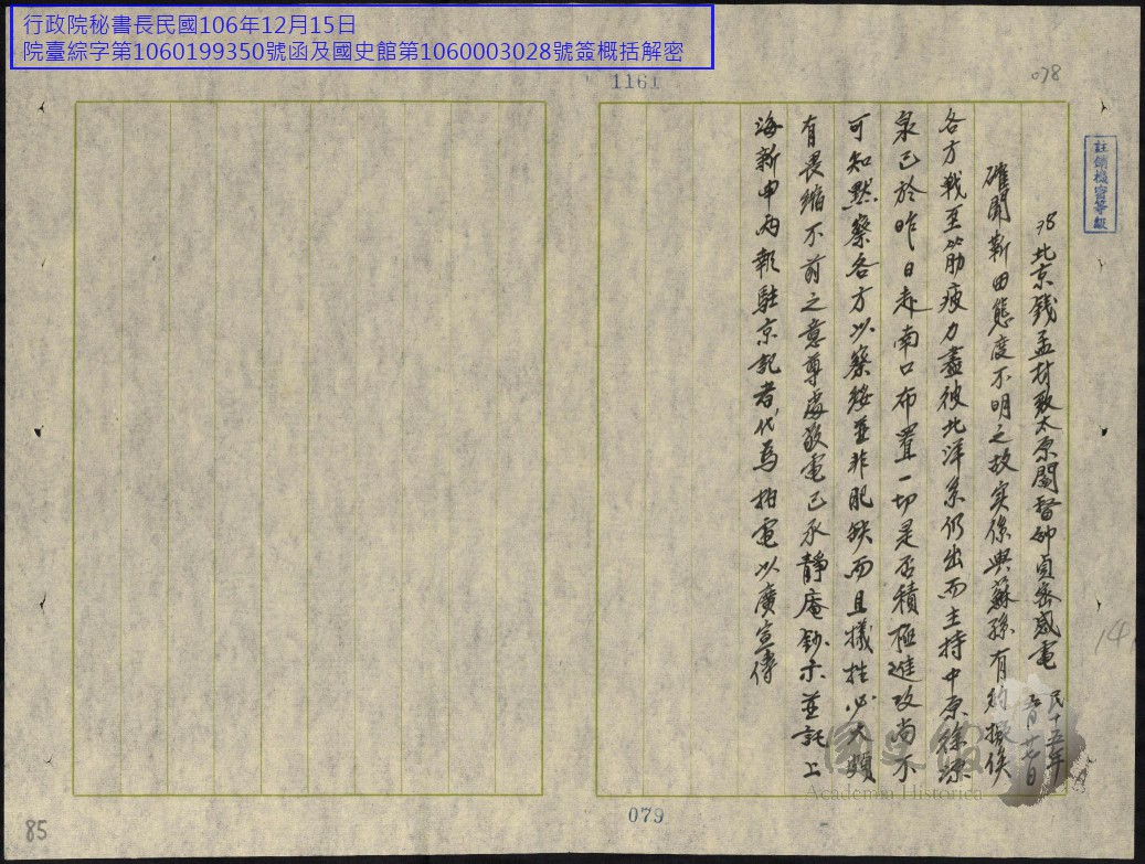 各方民國15年往來電文錄存(十七)【原卷名:各方往來電文民國十五年一至六月第二冊】