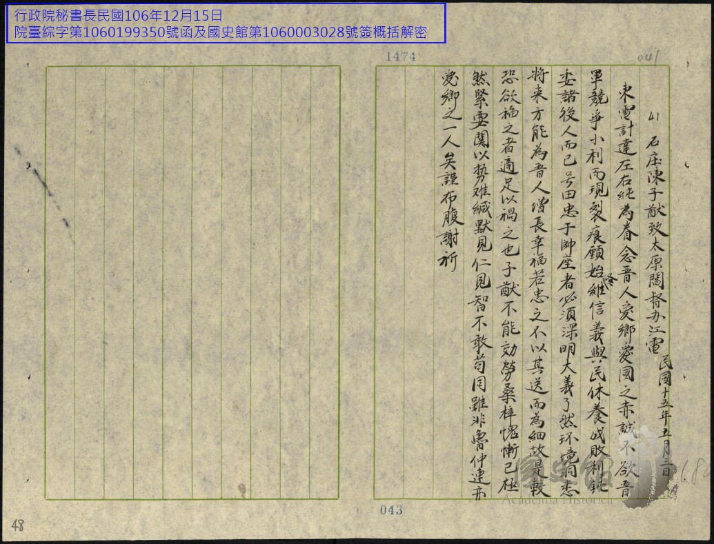 閻錫山史料/文件/電報/各方往來電文原案及錄存