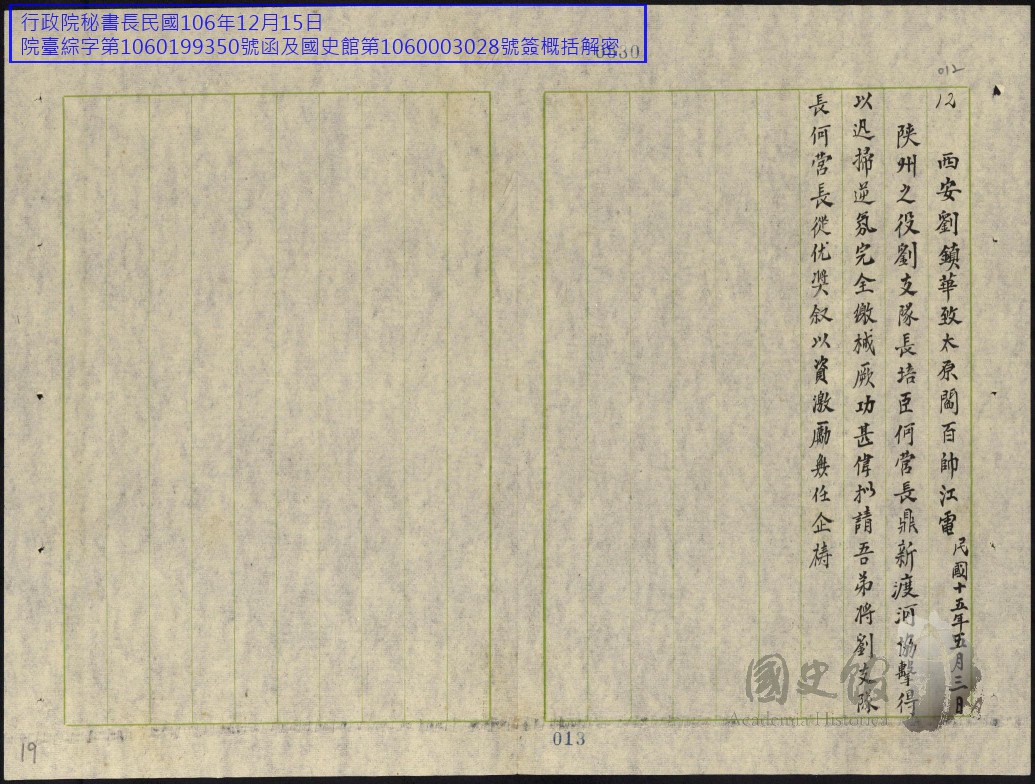 閻錫山史料/文件/電報/各方往來電文原案及錄存