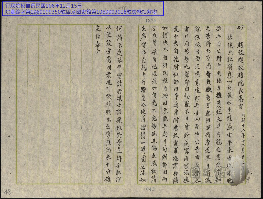 閻錫山史料/文件/電報/各方往來電文原案及錄存