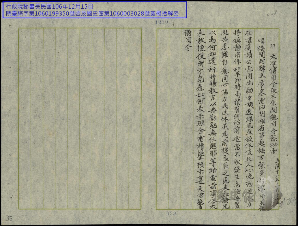 各方民國18年往來電文錄存(二十五)【原卷名:各方往來電文民國十八年十二月至十九年二月第一冊】