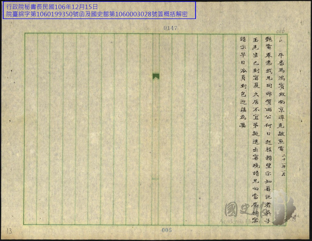 閻錫山史料/文件/電報/各方往來電文原案及錄存