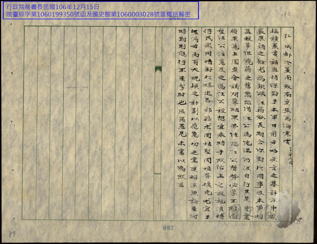 冷薰南電張篤倫汪兆銘蔣中正能長期合作對國事及本軍利益較多