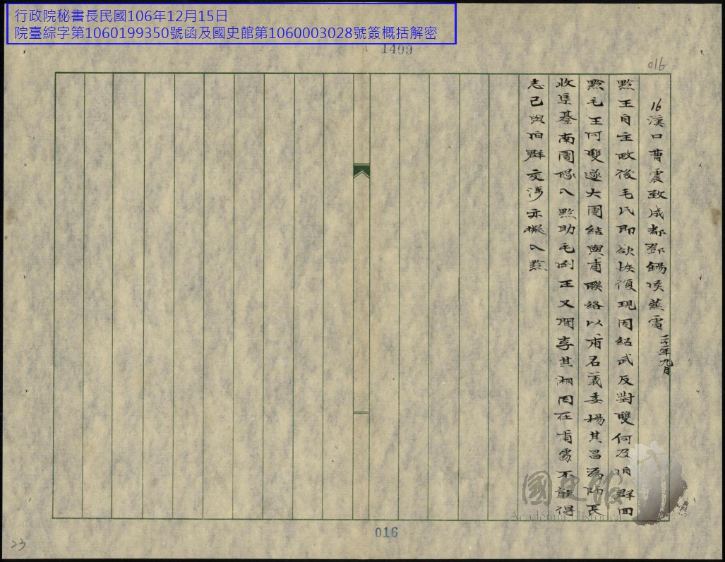 閻錫山史料/文件/電報/各方往來電文原案及錄存