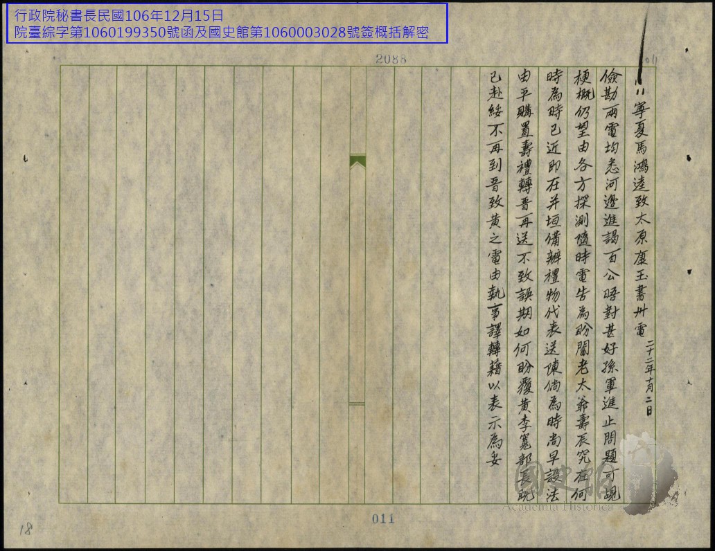 閻錫山史料/文件/電報/各方往來電文原案及錄存