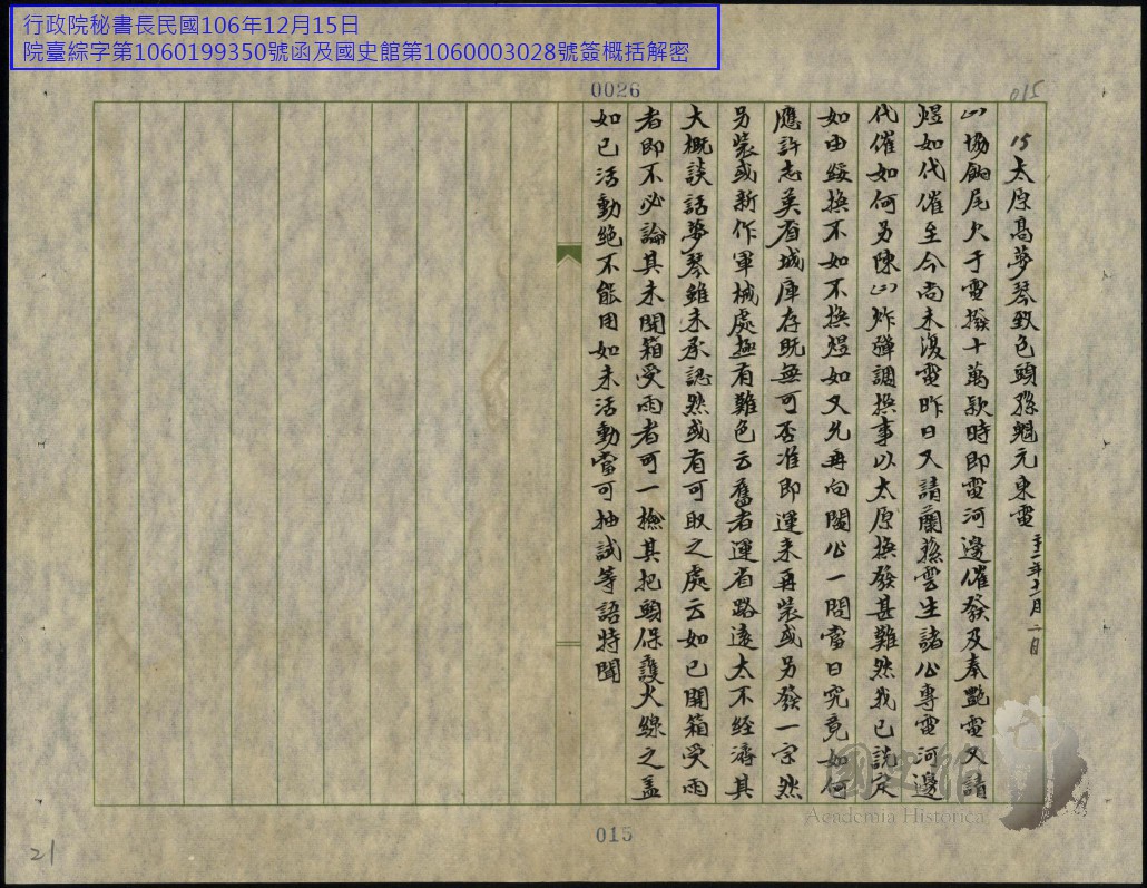 閻錫山史料/文件/電報/各方往來電文原案及錄存