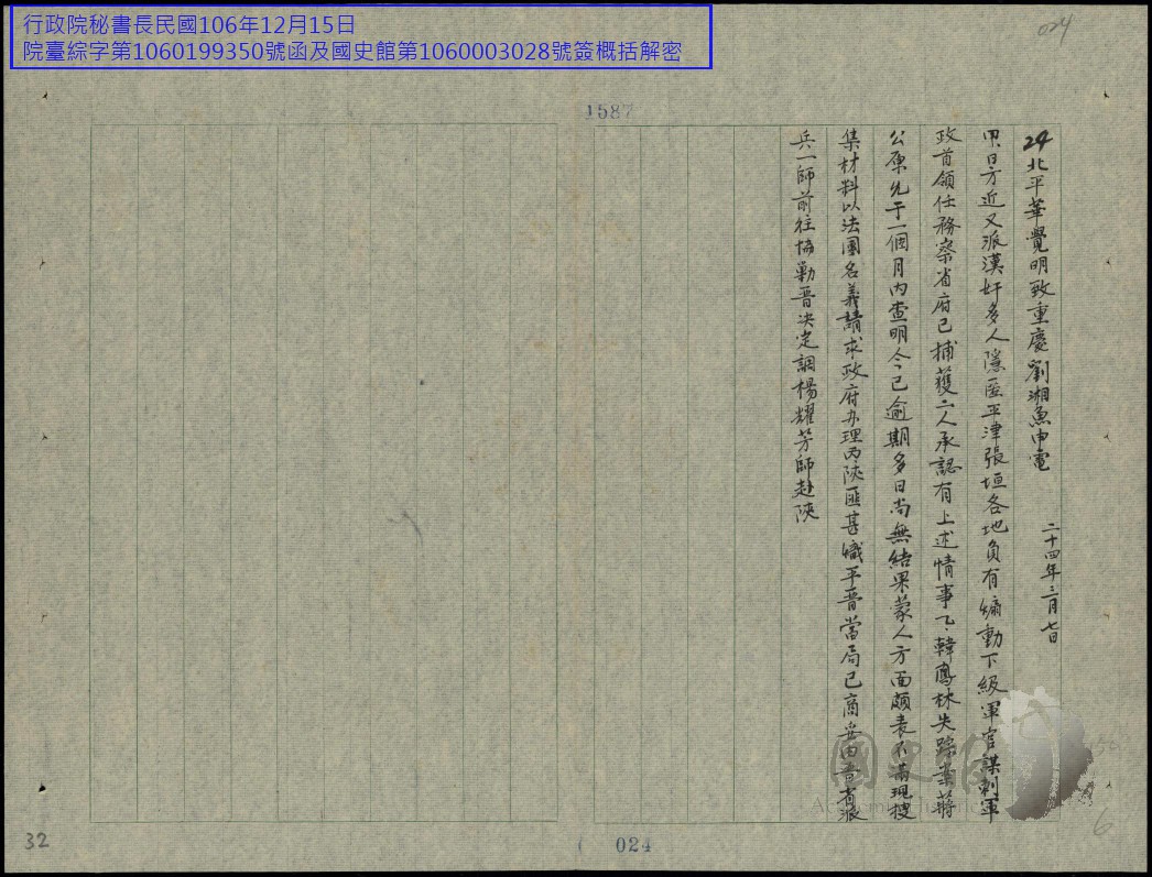 各方民國24年3月往來電文錄存【原卷名:各方往來電文民國二十四年三月第一冊】